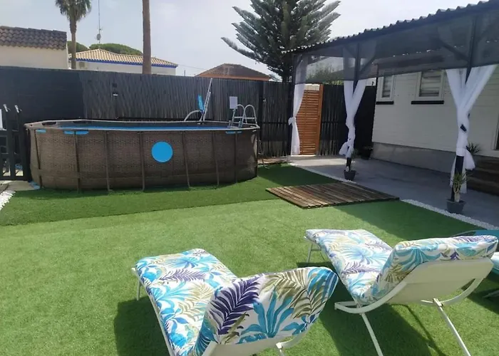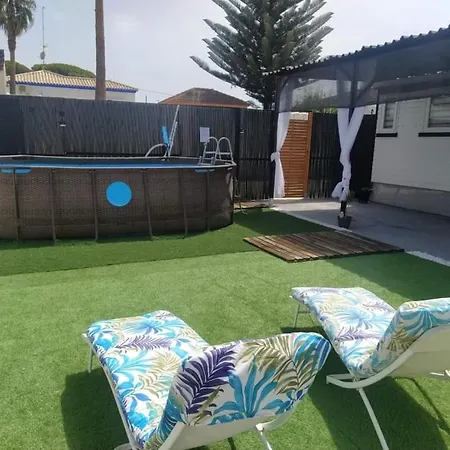 Bungalow, Suenos Del Sur! Chiclana de la Frontera nabízí venkovní plavecký bazén pro relaxaci. Vila Bungalow, Suenos Del Sur! je 2 km od Golfový klub Novo Sancti Petri a nabízí golfové hřiště a zahradu.